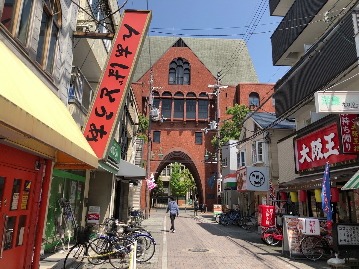 学会の用事で年に一回程度訪問するだけなのであまり詳しくは知りませんが、関大前駅から大学正門前まで、ラーメン屋さんや居酒屋など学生向けのお店がたくさん並んでいます。